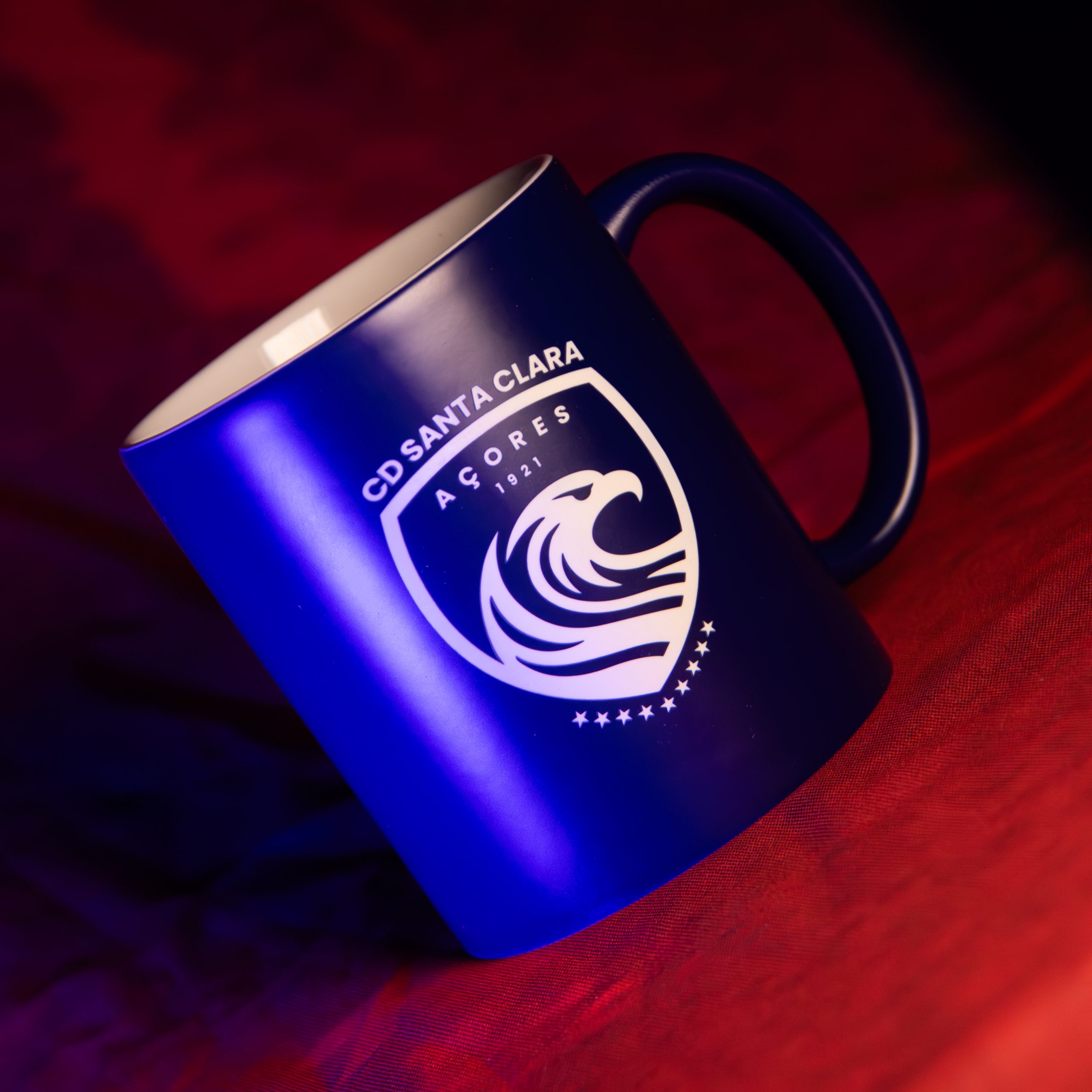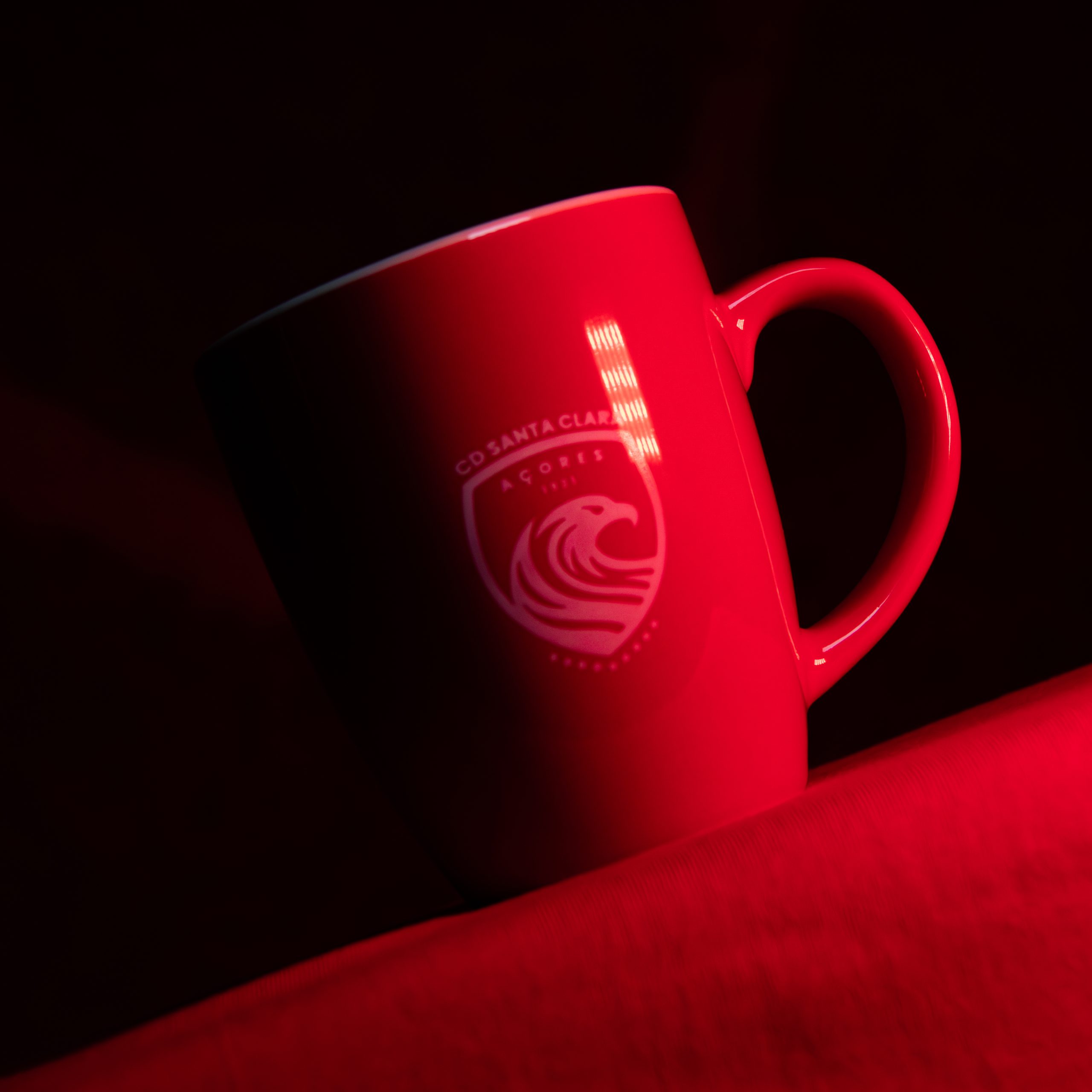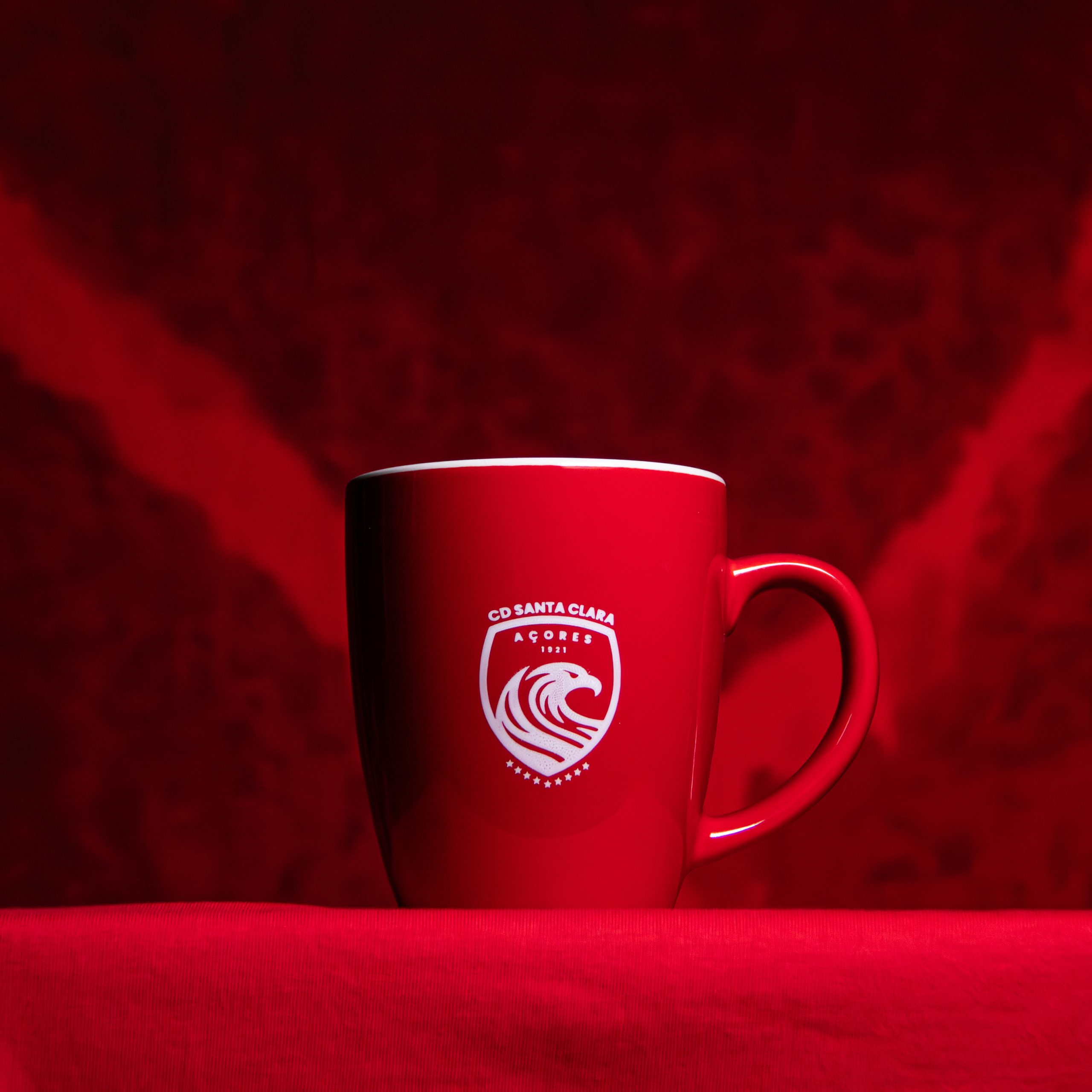 Official Santa Clara enamel mug in red, featuring a durable design and classic finish. Ideal for everyday use or for collectors who want to bring the Azorean spirit into their routine.