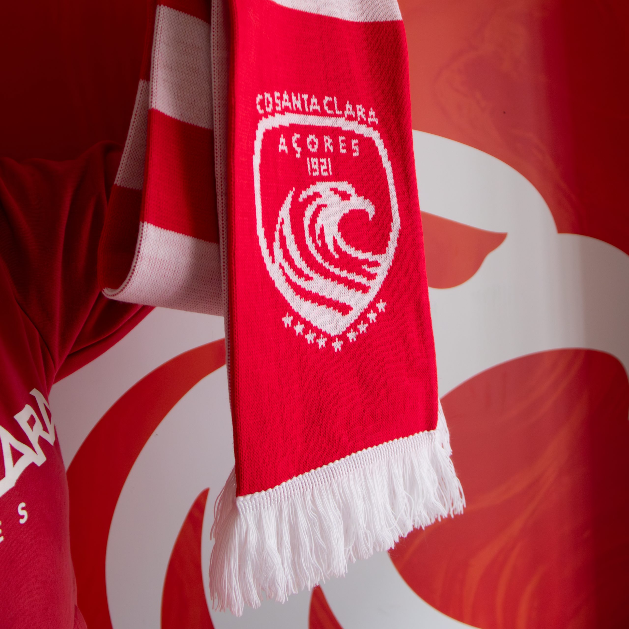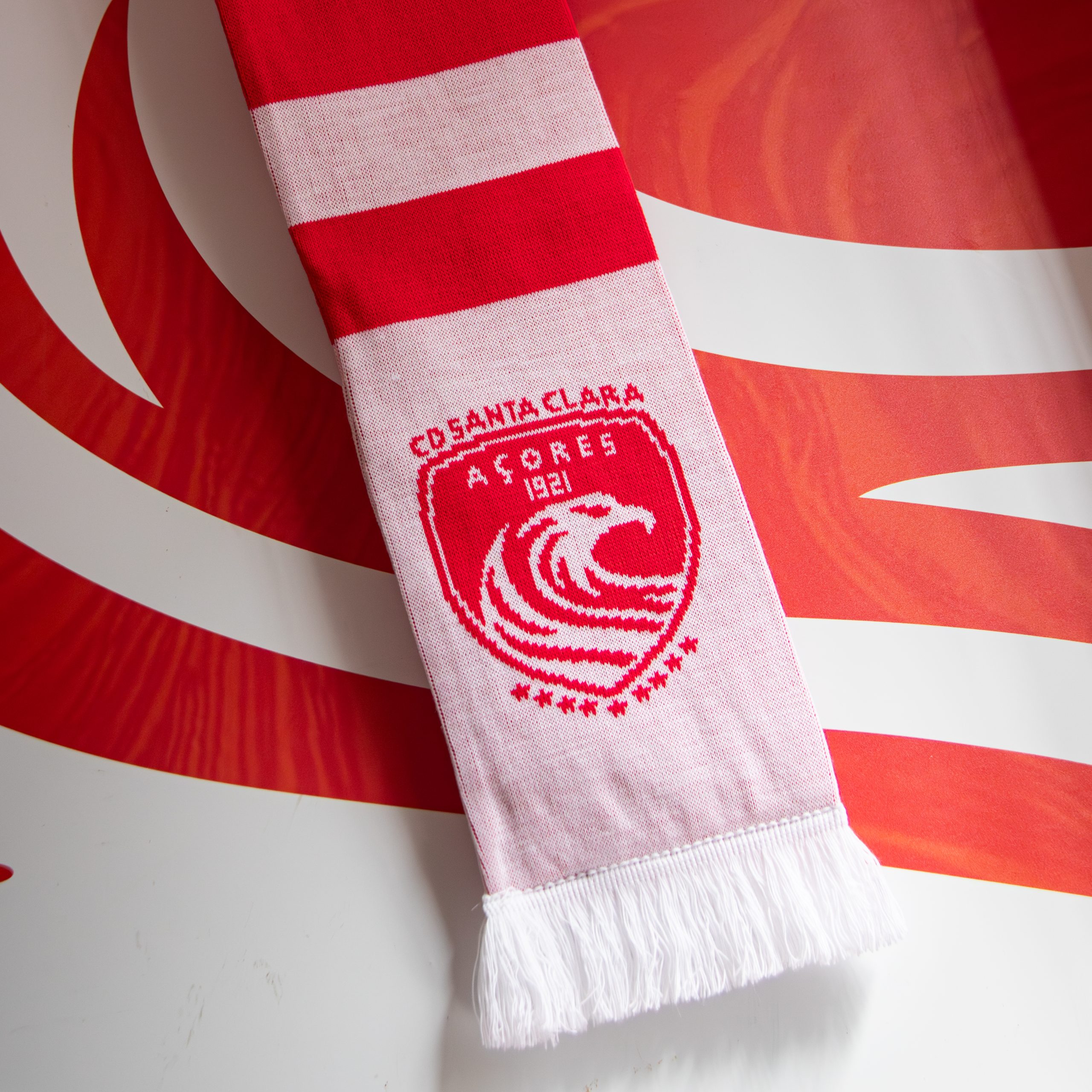 Cachecol Santa Clara em vermelho e branco com emblema do clube. Um modelo clássico para qualquer adepto que vive o Santa Clara em cada jogo. Produto licenciado.