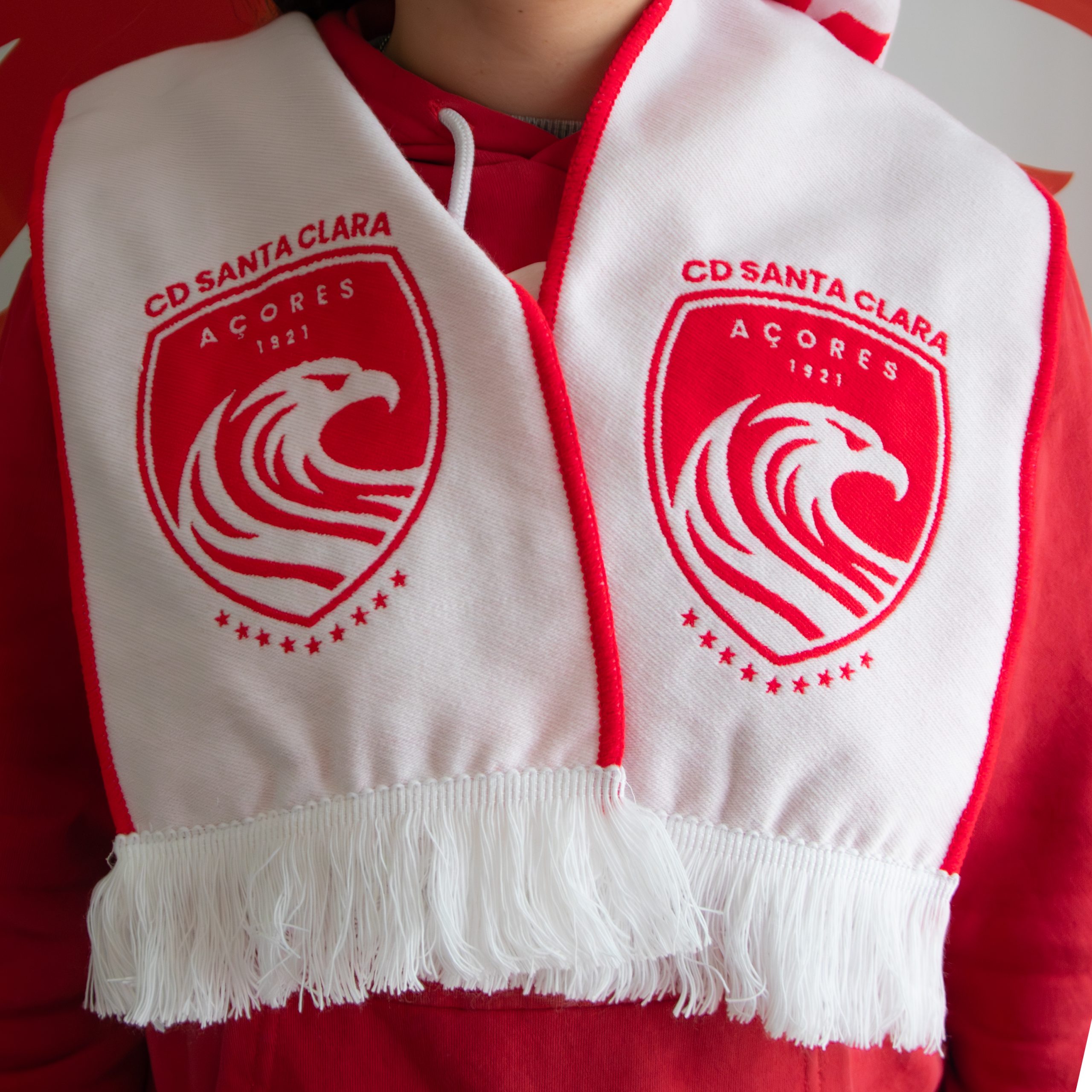 Cachecol oficial Santa Clara com a mensagem Paixão Pelos Açores. Perfeito para levar o orgulho açoriano para o estádio ou para o dia a dia. Produto licenciado.