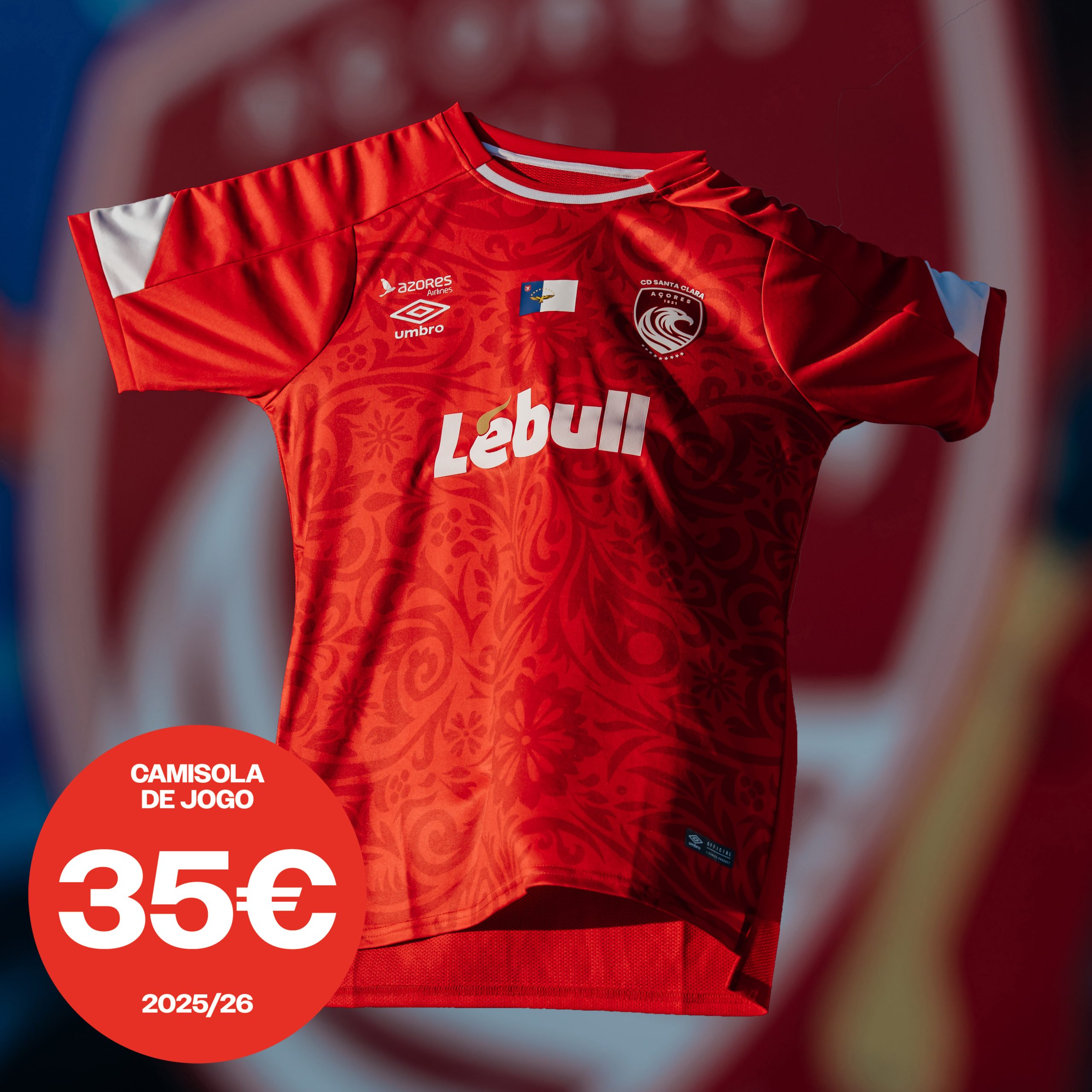 Camisola principal do Santa Clara para a época 2025/26, em vermelho tradicional, com design sublimado que homenageia a cultura e os costumes açorianos. O padrão floral celebra a união entre arquitetura, trajes e utensílios locais. Produzida pela Umbro com tecnologia Pro-Training, combina identidade, conforto e performance de topo.
