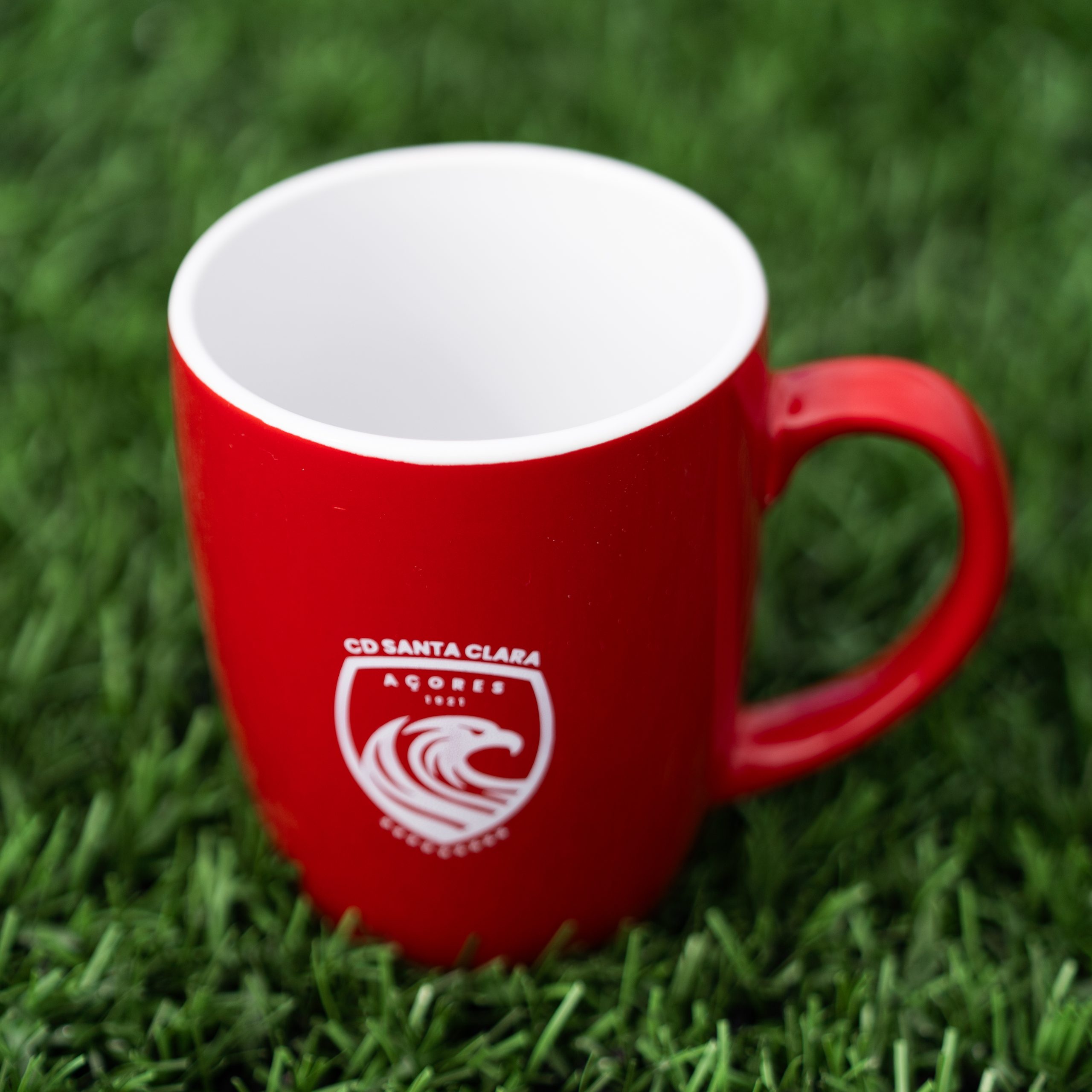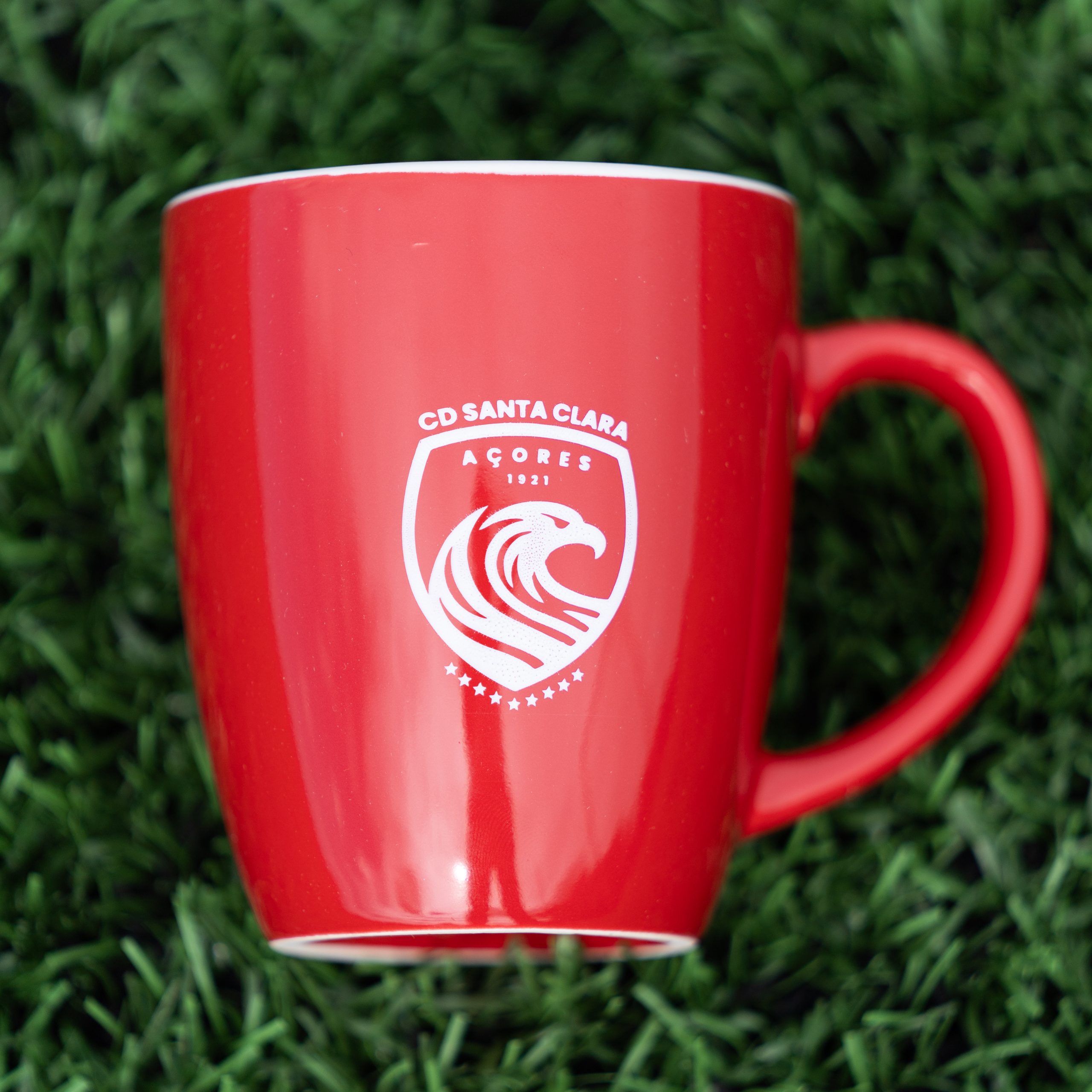 Caneca esmaltada oficial do Santa Clara, em vermelho, com design resistente e acabamento clássico. Ideal para uso diário ou para colecionadores que querem levar o espírito açoriano para a sua rotina.