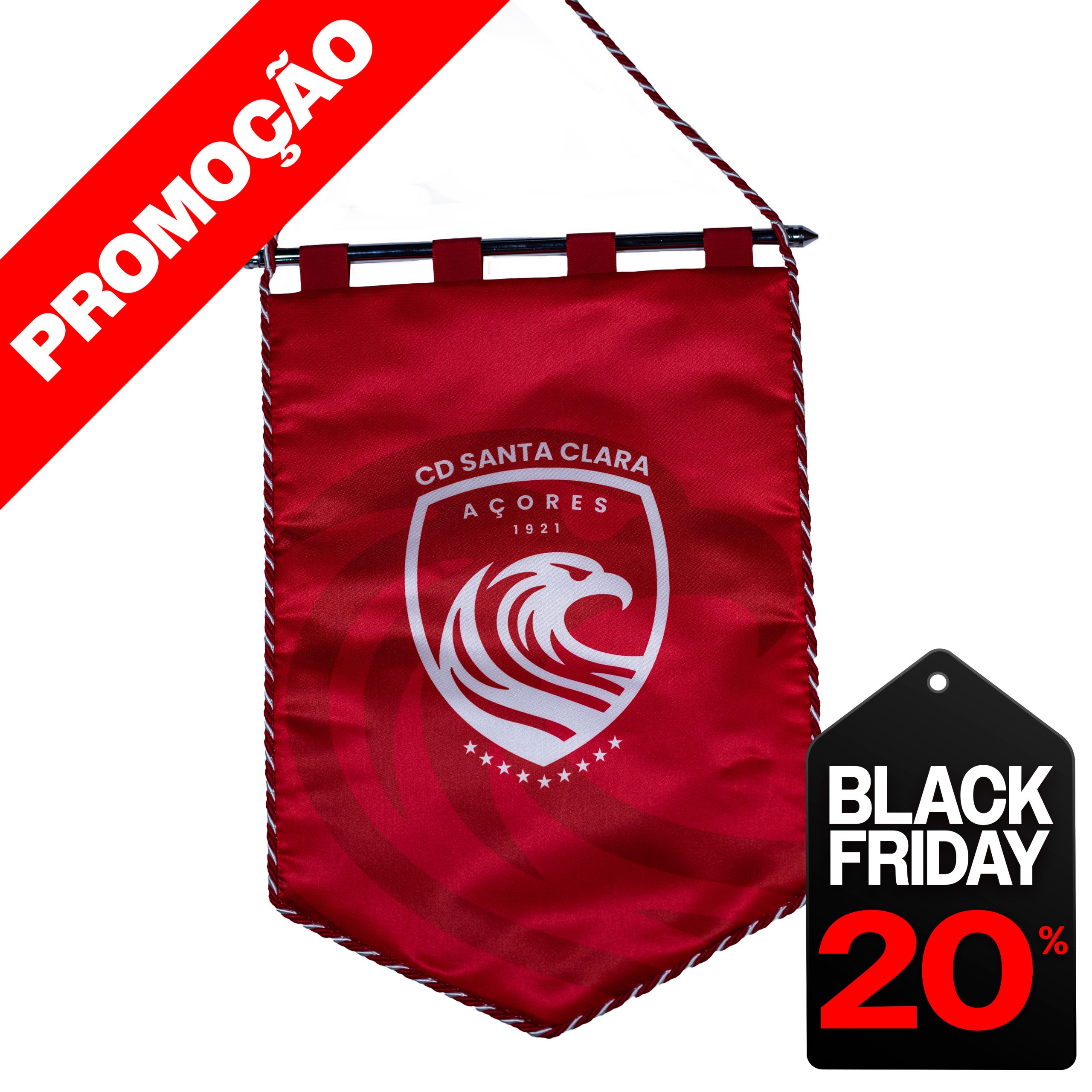 Galhardete oficial do Santa Clara, em vermelho, com o emblema do clube em destaque. Peça simbólica que representa orgulho, tradição e ligação aos Açores — ideal para exposição ou coleção.