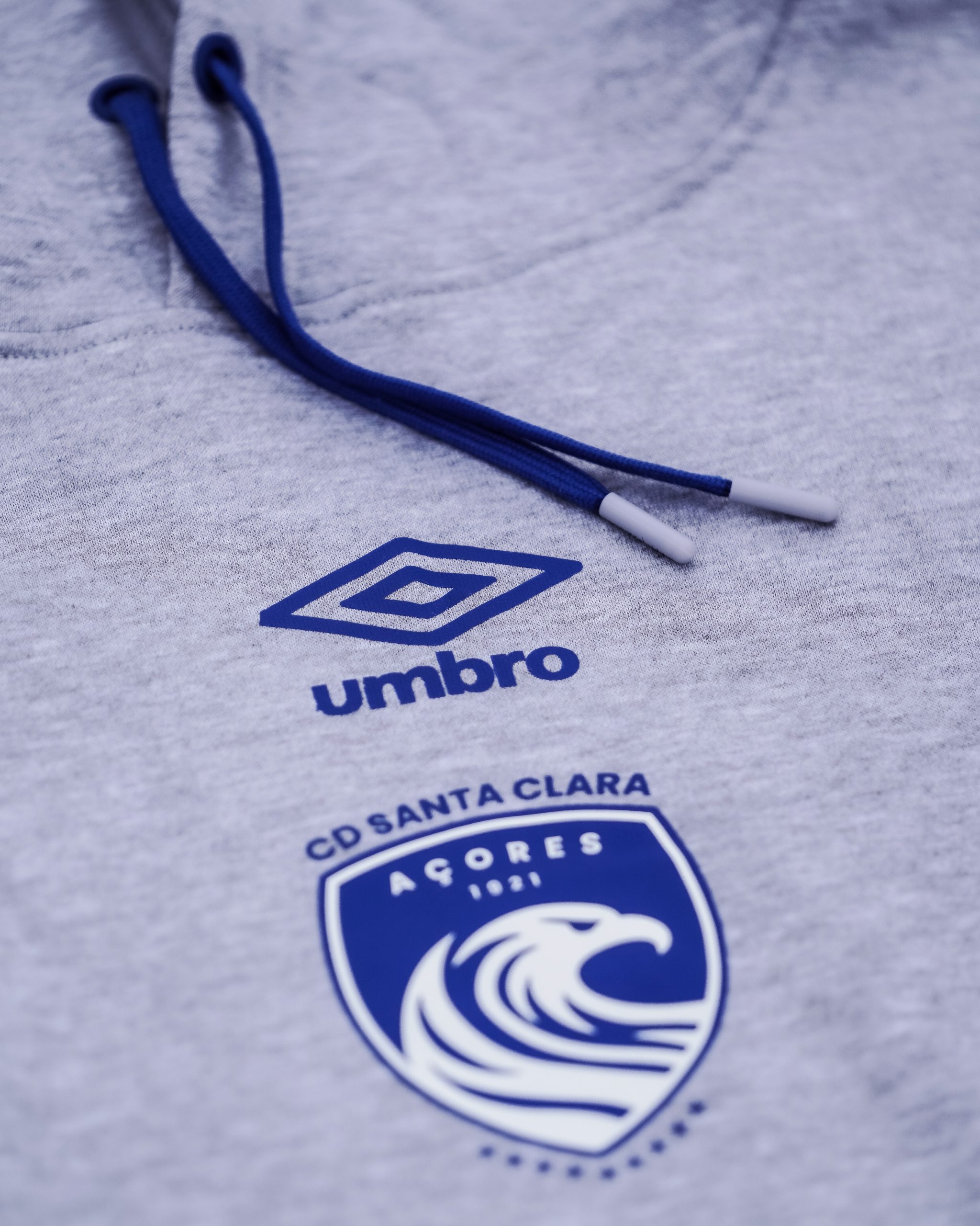 Casaco cinzento de passeio com capuz, utilizado pelo staff do Santa Clara. Confeccionado em 100% algodão, oferece conforto, suavidade e estilo casual para o dia a dia.